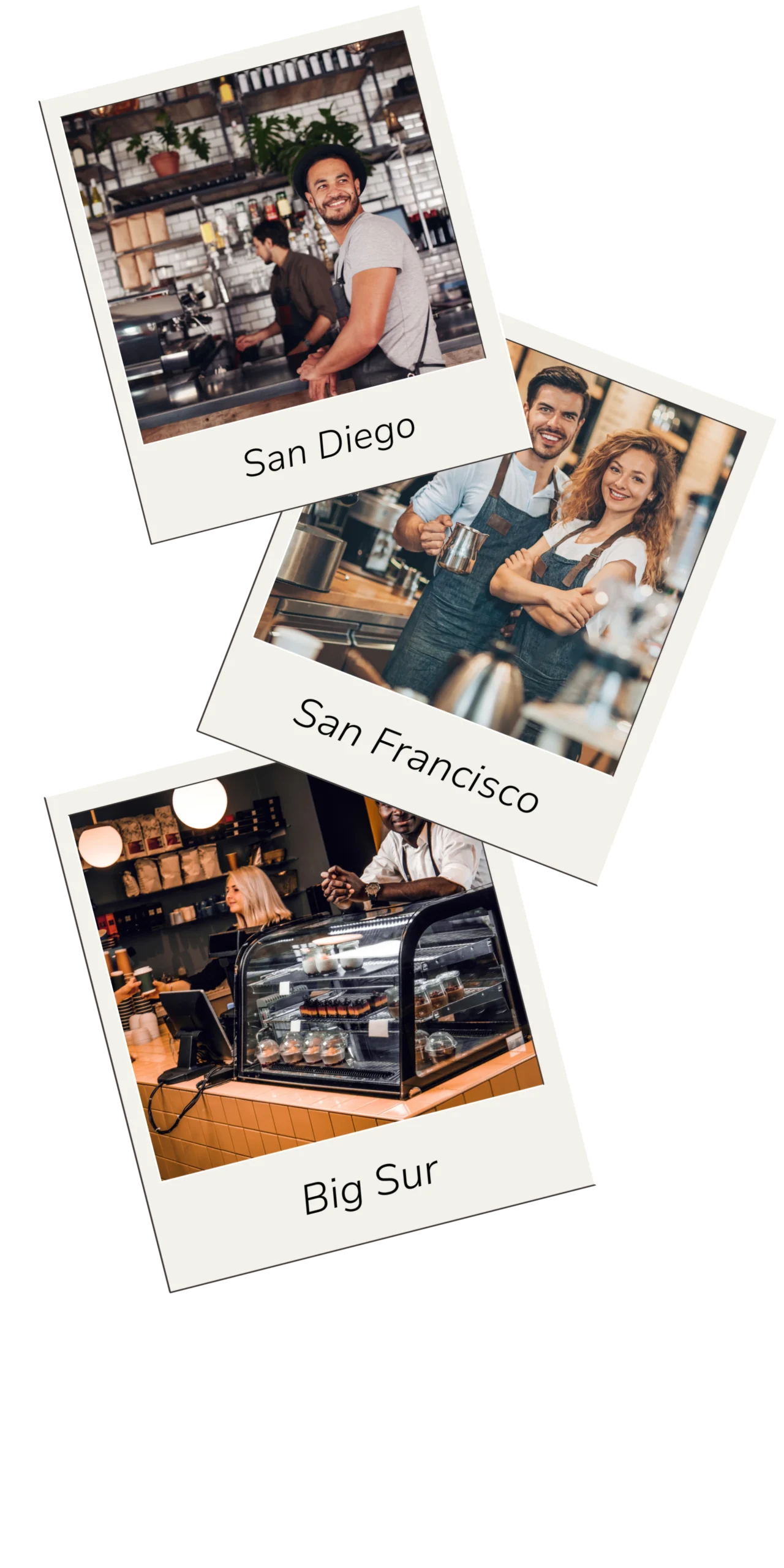 Come visit us in San Diego, San Francisco, or Big Sur and see why locals call us their new favorite spot.